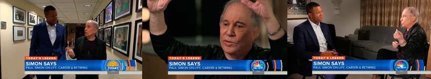 Comentarios: Entrevista a Paul Simon de unos 4 minutos a cargo de Craig Melvin, donde habla de su carrera, su último concierto en el Flushing Meadows Corona Park y su decisión de abandonar las giras.