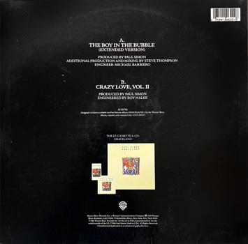 Abajo el single en edición Maxi-Single de 12" con la versión Extendida de The Boy In The Bubble que tiene una duración de 6:11 minutos.