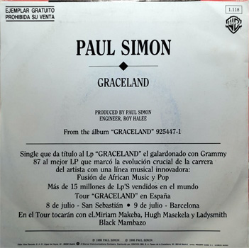 Single promocional español por motivo del paso del Graceland Tour por España.