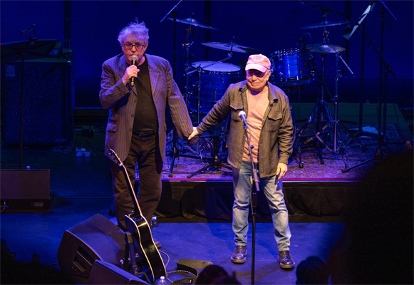 Mayo 2024 Paul Simon fue uno de los galardonados este año en la gala anual de PEN America, que se celebró el 16 de mayo en el Museo Americano de Historia Natural de Nueva York. Simon recibió el premio PEN/Audible Literary Service Award por sus abundantes e incomparables canciones y letras a lo largo de medio siglo. El autor de bestsellers Malcolm Gladwell entregó el premio literario a Simon, diciendo que el compositor "ha proporcionado la banda sonora de mi vida y creo que eso es cierto para millones de nosotros en todo el mundo". Gladwell agregó que Simon era un cruce entre "un genio y el tipo de Queens en las gradas gritando '¡Estaba fuera!'”. Por su parte Simon dijo: "Hemos aprendido que la causa que estamos apoyando esta noche, el compromiso válido de PEN de proteger a los escritores de todo el mundo de la censura, la coerción y el encarcelamiento, se necesita con más urgencia que nunca. ¿Qué podemos hacer frente a estos problemas aparentemente montañosos? En el peor de los casos, nos asomaremos a un abismo cultural y político. Eso no va a suceder", agregó, citando versos de la poetisa premio Nobel Wisława Szymborska: "un abismo, pero un pequeño puente, un pequeño puente, pero tembloroso, tembloroso, pero el único, no hay otro". "Tendremos que construir ese puente", dijo Simon. "No hay otra opción para nosotros. Tenemos los recursos para hacer del futuro un lugar mejor. El arte es un arma de paz. Cuando nos volvamos a encontrar dentro de 50 años, habrá alguna otra melodía estadounidense (American Tune) que describa una época más optimista en nuestro país. Ese será su legado". A continuación, Simon, guitarra acústica en mano interpretó "American Tune", que escribió en 1972 después de la elección de Richard Nixon y con los tiroteos de manifestantes estudiantiles en la Universidad Estatal de Kent frescos en su mente. "El estado de ánimo hoy es incómodamente similar al de esa época", dijo. La multitud se conmovió con su canto tranquilo, casi trascendente.