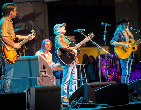 Enero 2026 El 10 de enero se celebró Lōkahi: A Celebration of Maui, un concierto benéfico en apoyo de Housing for Healthcare, una iniciativa destinada a afrontar la urgente escasez de profesionales médicos en la isla de Maui, Hawái. Lukas Nelson, hijo del legendario Willie Nelson, ejerció como anfitrión y principal artista de la velada, que tuvo lugar en el Maui Arts & Cultural Center. El cartel reunió a músicos como Stephen Wilson Jr., Lily Meola, Mick Fleetwood, The Maui Country Band y otros artistas locales y familiares, generando un ambiente de cercanía, comunidad y celebración musical. El momento más esperado llegó al final del concierto, cuando Paul Simon apareció sobre el escenario. Acompañado por la banda de Lukas Nelson, interpretó cinco canciones: “Kodachrome”, “Slip Slidin’ Away”, “Me and Julio Down by the Schoolyard”, “The Boxer” —tema en el que se sumó Pat Simmons, de The Doobie Brothers— y cerró su participación con “The Sound of Silence”, desatando una de las ovaciones más intensas de la noche. Abajo un par de fotos del evento, en la primera, a la derecha, aparece Pat Simmons; en la segunda, saludando junto a Lukas Nelson. ![]()