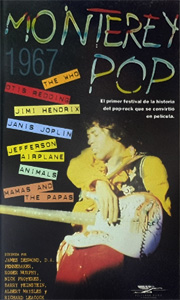 Publicado en video VHS en 1985 Comentarios: Video que recoge la película-documental dirigida por D.A. Pennebaker sobre el Festival de Monterey de 1967 y que fue estrenado en cines en Diciembre de 1968. La cadena de televisión ABC tenía los derechos de emisión de la película pero se negó a emitirla debido a que consideraban obscena su interpretación de Jimi Hendrix de "Wild Thing". Escena ahora mítica de la historia del rock que culmina con el incendio de su guitarra.