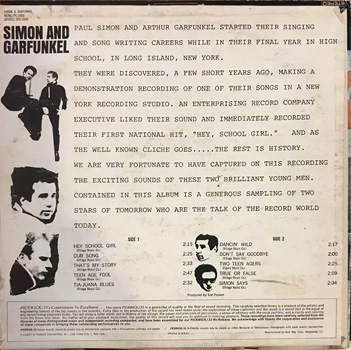 Por esas mismas fechas Sid Prosen estuvo involucrado en otra artimaña comercial, cuando cedió las canciones que el dúo había grabado (más el single en solitario de Simon bajo el seudónimo de True Taylor) casi 10 años antes bajo el nombre de Tom & Jerry para Big Records a la editorial Pickwick. Aunque en la portada no lo nombra en la etiqueta del disco viene titulado como "The Hit Sounds Of Simon & Garfunkel"