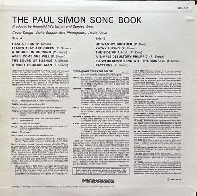 Publicado en agosto de 1965 en Reino Unido en disco de vinilo en dos variantes, mono y stereo. En la contraportada podíamos leer una introducción y una surrealista historia escrita por Paul Simon (puedes leer traducida Aquí) asi como unas notas sobre cada canción del disco escritas por Judith Piepe, exceptuando el texto sobre "He Was My Brother" que estaba escrito por Art Garfunkel.