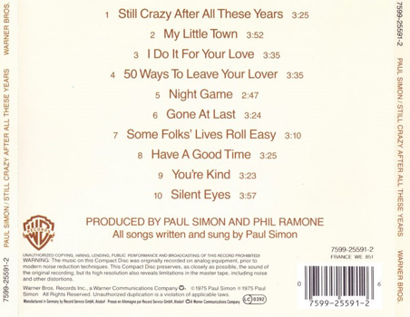 En 1986 con Paul Simon en Warner, su antiguo sello, CBS, decide sacar en CD solo para Europa y Australia "Still Crazy After All These Years" dentro de una serie de lanzamientos llamados "Historic Reissue".