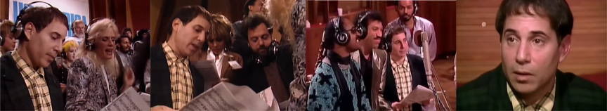 Comentarios: Documental "detras de las camaras" presentado por Jane Fonda que recoge imágenes de la maratoniana sesión de grabación del 28 de enero de 1985, día en el que se grabó la famosa canción compuesta por Lionel Richie y Michael Jackson. Podemos ver a Simon varias veces durante este documental y en el famoso videoclip.